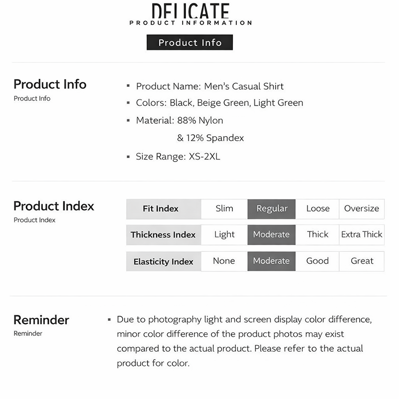 The size chart and product information suggest a broad size range and a fit made for regular outdoor use. The shirt feels positioned as a lightweight utility layer for daily wear rather than a heavy insulated overshirt, which makes it a practical option for spring, summer, and transitional weather.