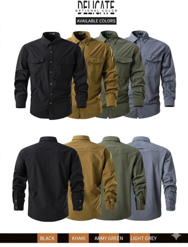 SHL24 carries a clean, structured outdoor-shirt silhouette with a practical long-sleeve design. The fit looks sharp enough for everyday casual styling while still feeling appropriate for hiking, work use, travel, camping, and tactical-inspired outfits. The overall balance between function and appearance gives the shirt wide everyday appeal.