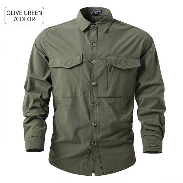 A very good everyday outdoor shirt. The collar, pockets, and cuff details look well finished, and the overall design gives a rugged look while still feeling modern.