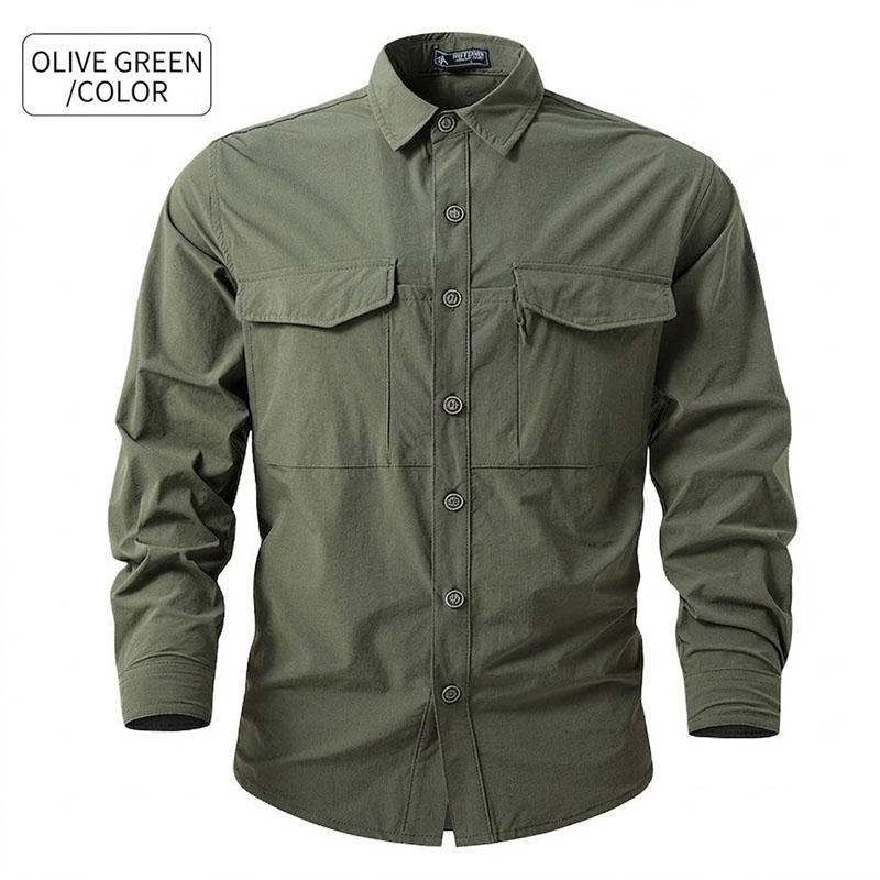 SHL24 Nylon Quick-Dry Outdoor Utility Shirt – Stretch Long-Sleeve Hiking and Work Shirt with Dual Chest Pockets