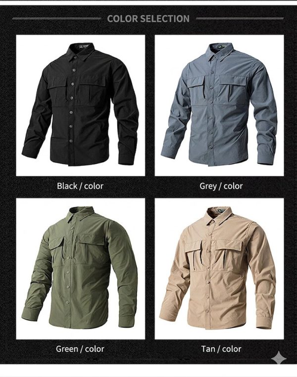 - Lightweight long-sleeve outdoor tactical shirt