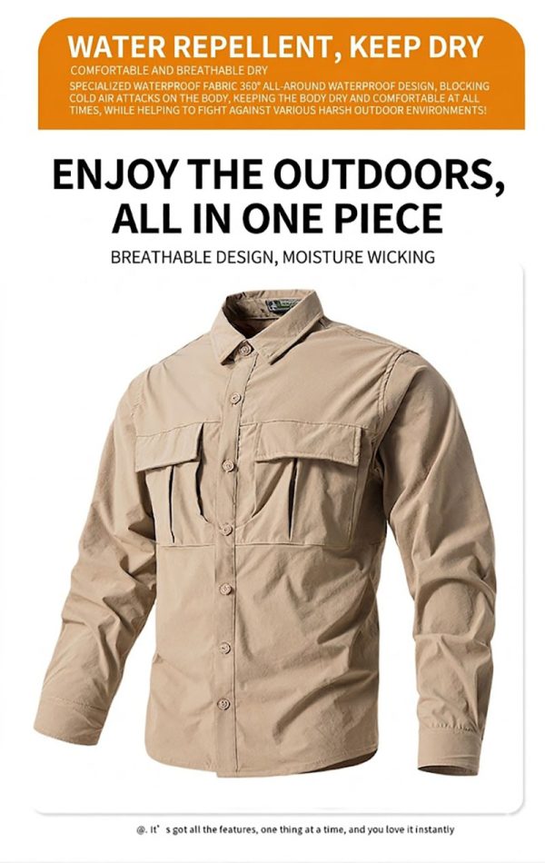 A very useful outdoor shirt with a neat tactical look. It is easy to match with jeans or cargo pants, and the material seems ideal for travel and daily wear.