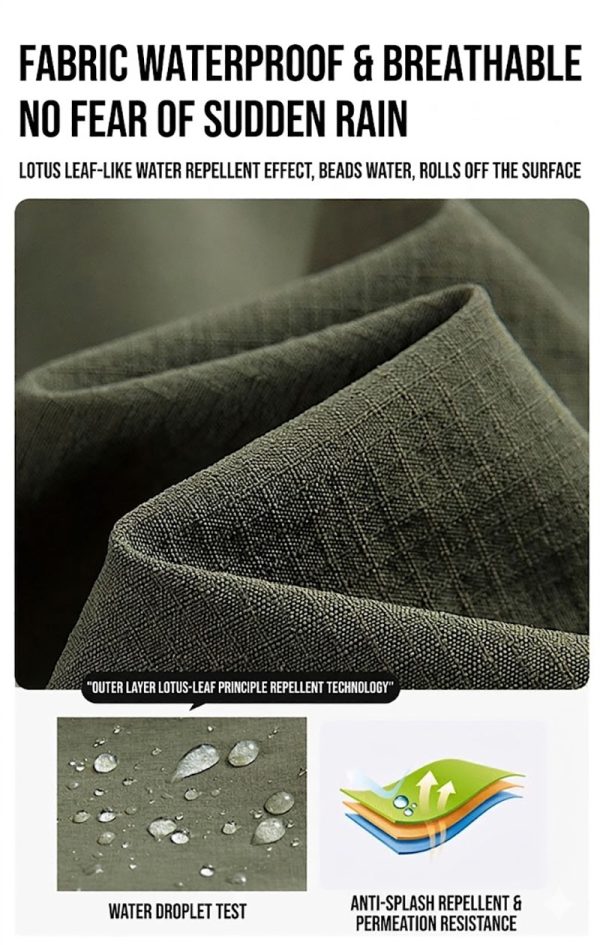 - Water-repellent and wrinkle-resistant material positioning