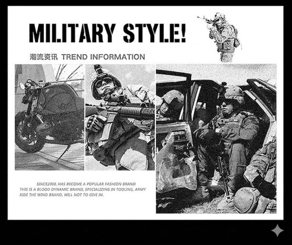 - Available in army green, grey, khaki, and black
