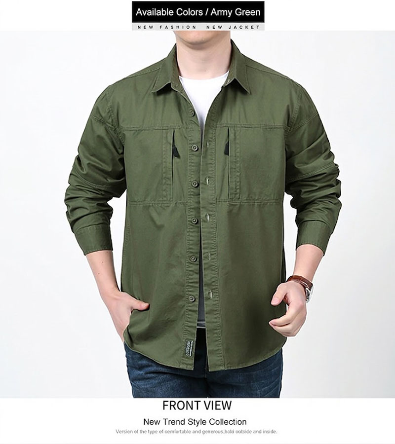 This is a great everyday overshirt for cooler mornings or light outdoor use. The collar looks sharp, the colors are practical, and the cotton style makes it feel more comfortable.
