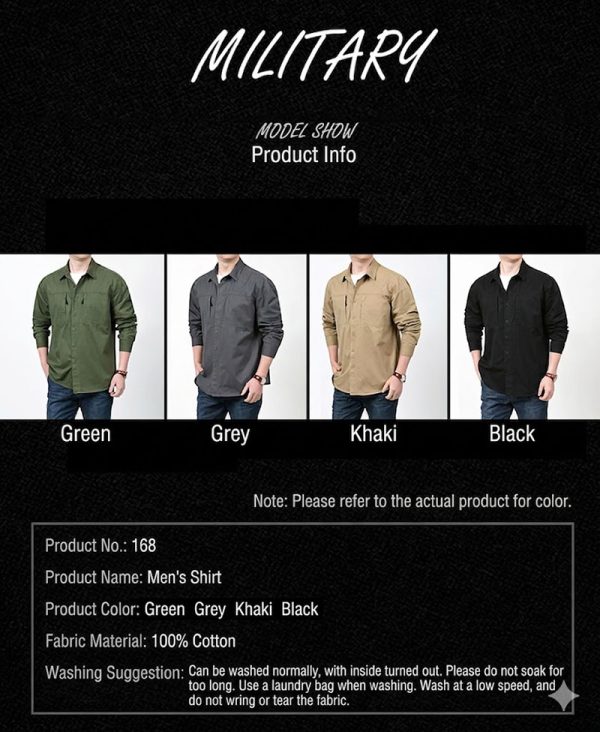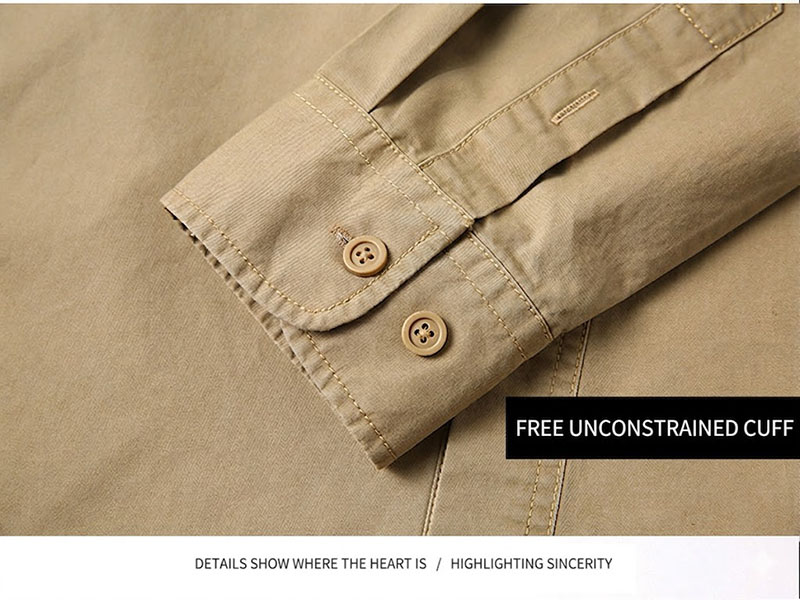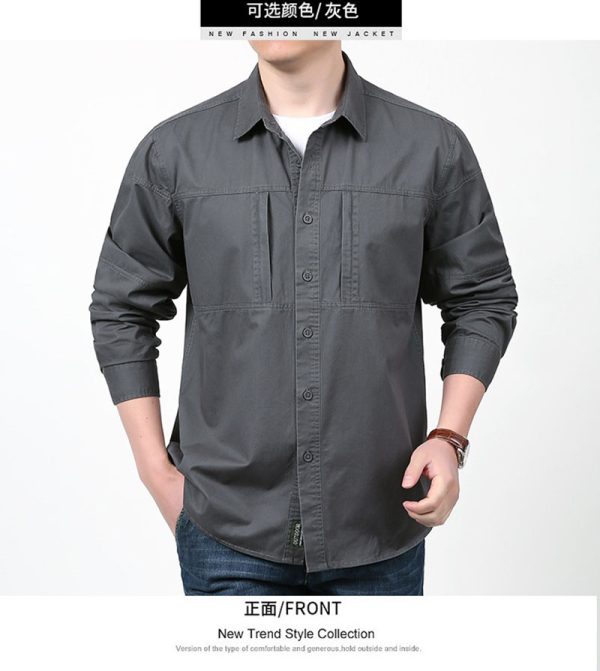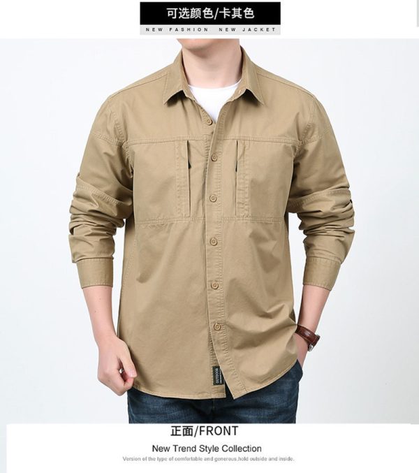 The product title and presentation position this shirt for spring and autumn, which fits well with its lightweight cotton character and easy layering potential. It works well for day-to-day use, outdoor walks, travel, casual meetups, and customers who want a shirt that feels rugged but still clean and approachable.