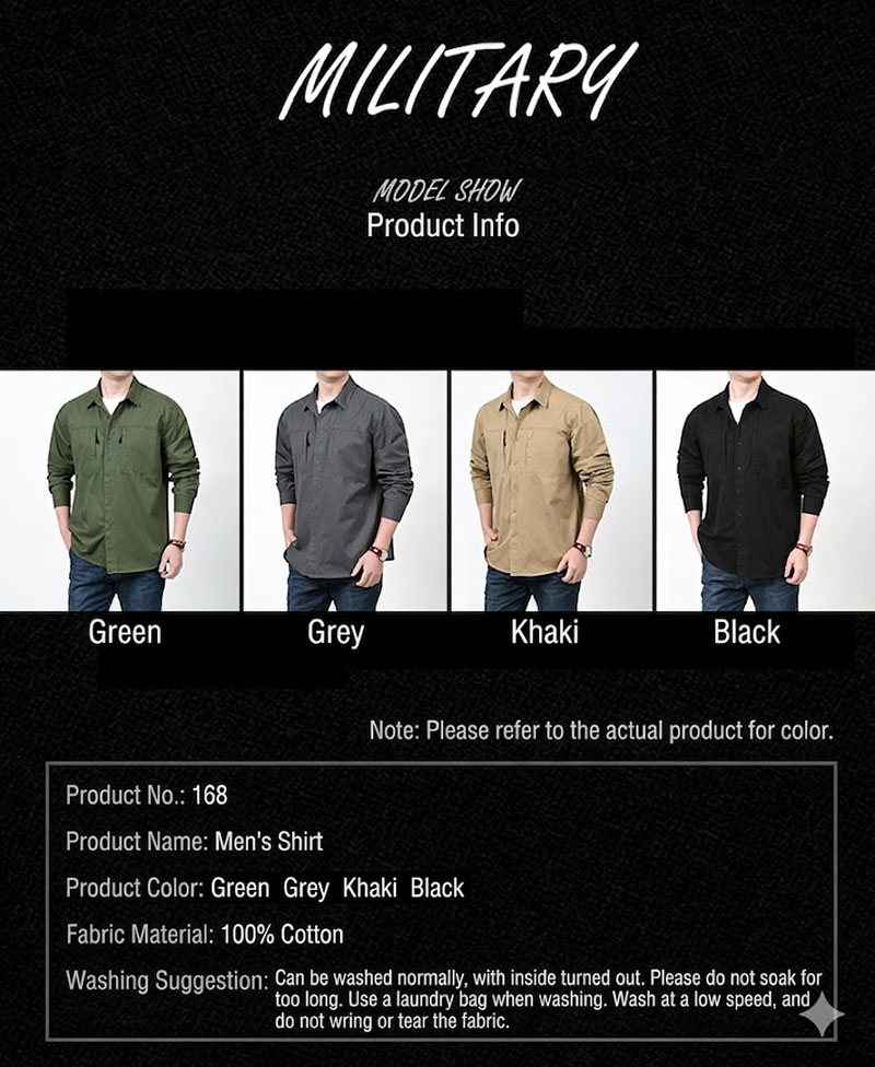 The style is presented in four versatile colors: army green, grey, khaki, and black. These shades make SHL27 easy to pair with jeans, cargo pants, chinos, and casual boots. The result is a shirt that can fit relaxed urban outfits, outdoor travel looks, and light workwear-inspired wardrobes with very little effort.