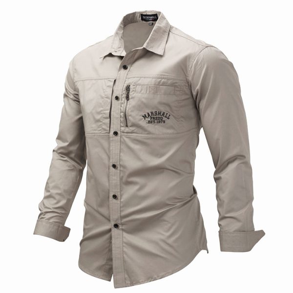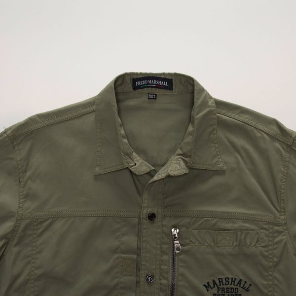 A front zipper closure gives the shirt a more contemporary utility-inspired look compared with a classic button-front style. The collar design keeps the product polished and versatile, helping it sit between a casual shirt and a lightweight jacket-style overshirt.