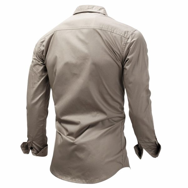 The listing positions this style for spring and autumn use, which suggests a midweight everyday shirt suited to mild weather and light layering. It can work as a standalone top or as a casual outer layer over a T-shirt depending on the temperature and styling preference.