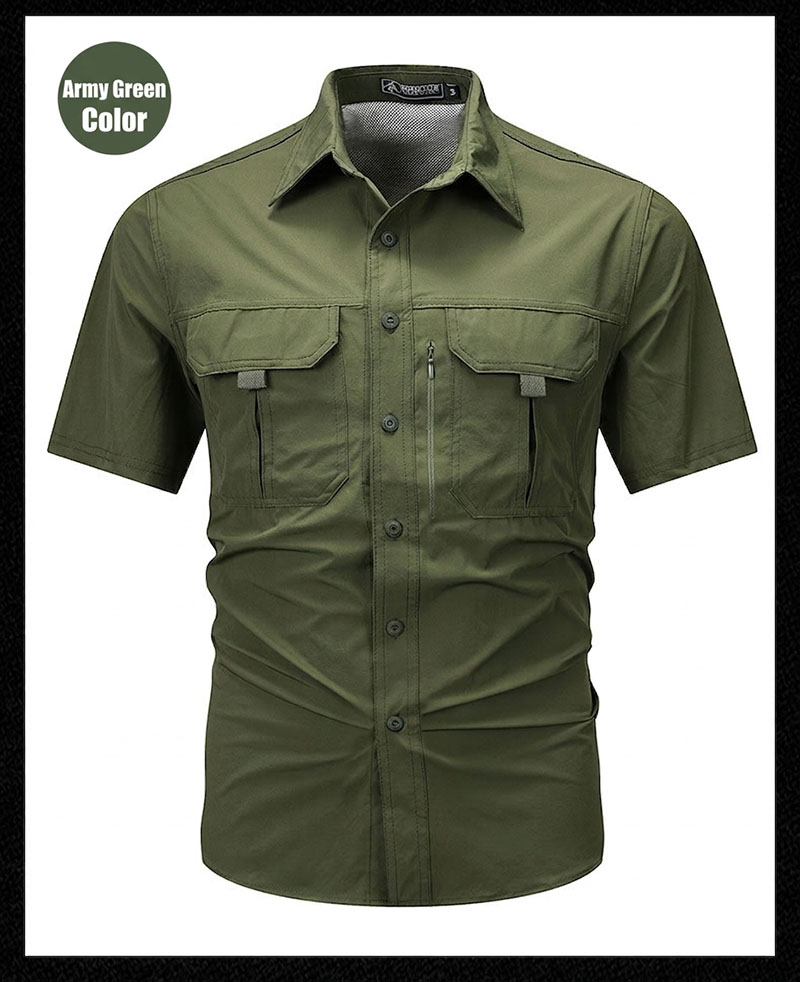 SHS05 Summer Outdoor Casual Multi-Pocket Workwear Short-Sleeved Shirt – Breathable Thin Quick-Drying Stretch Utility Shirt for Men