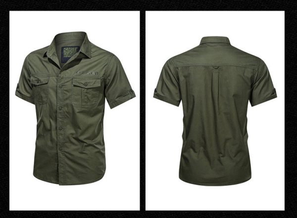 SHS08 Summer Workwear Short-Sleeved Shirt for Men – Loose-Fit Outdoor Cotton Utility Shirt, Non-Iron Casual Workwear Top