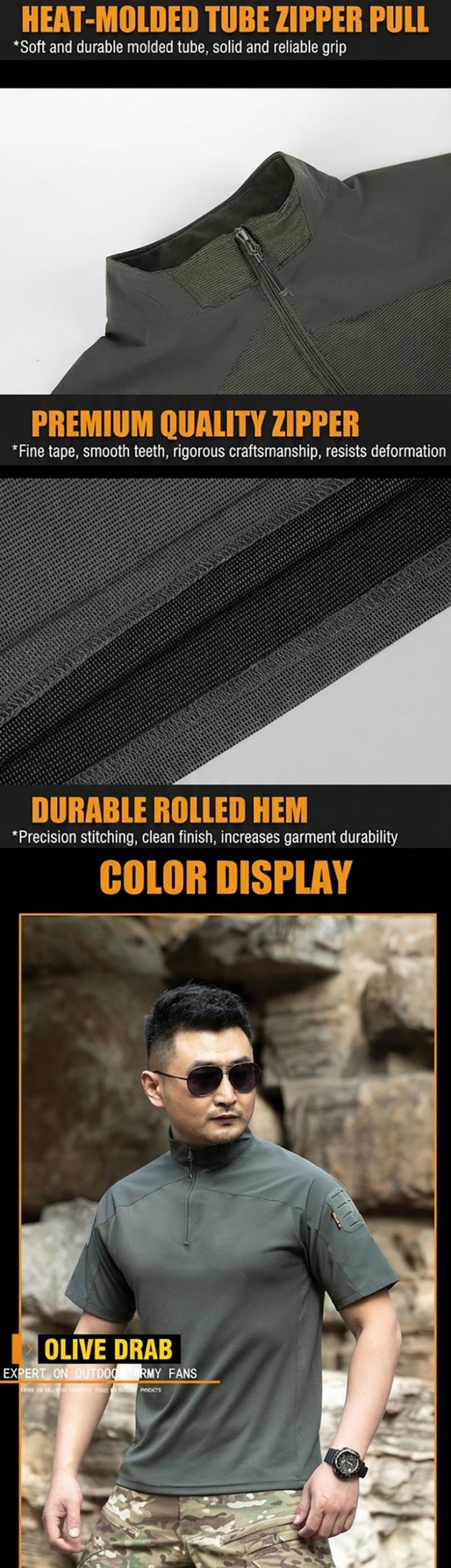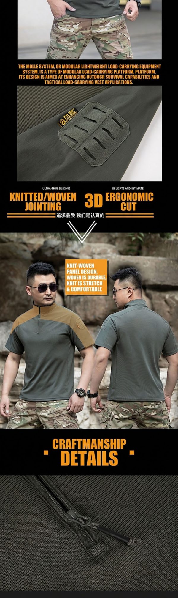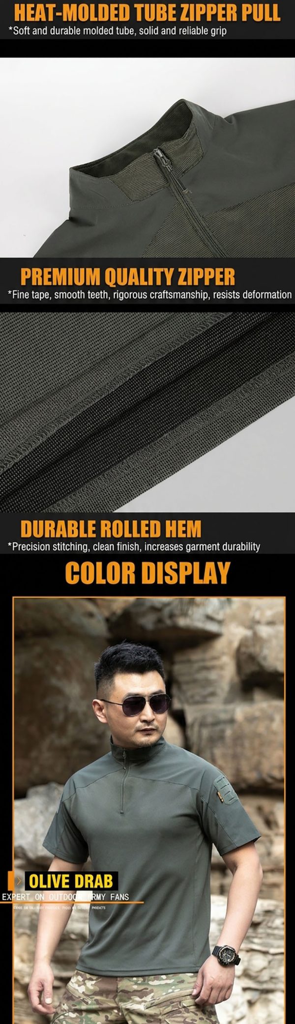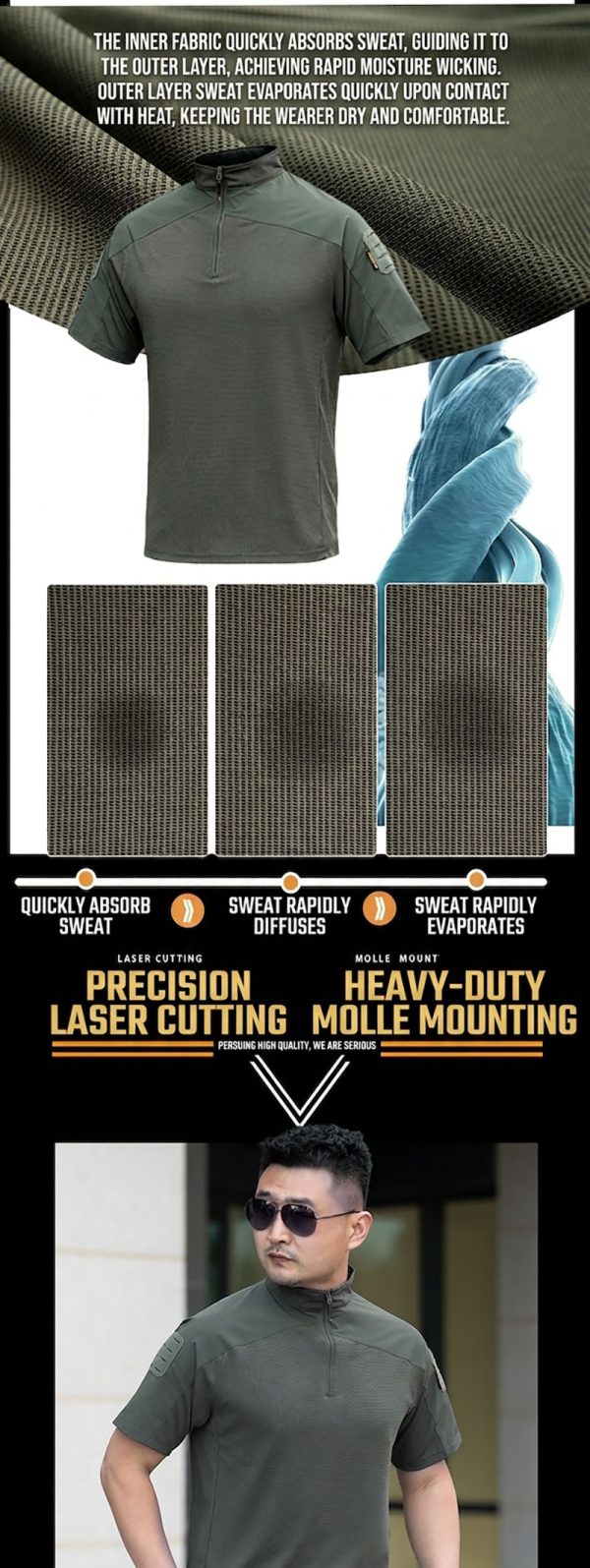 The shirt has a strong tactical look and feels very easy to wear in hot weather. I like the loose fit because it is more comfortable for outdoor movement.