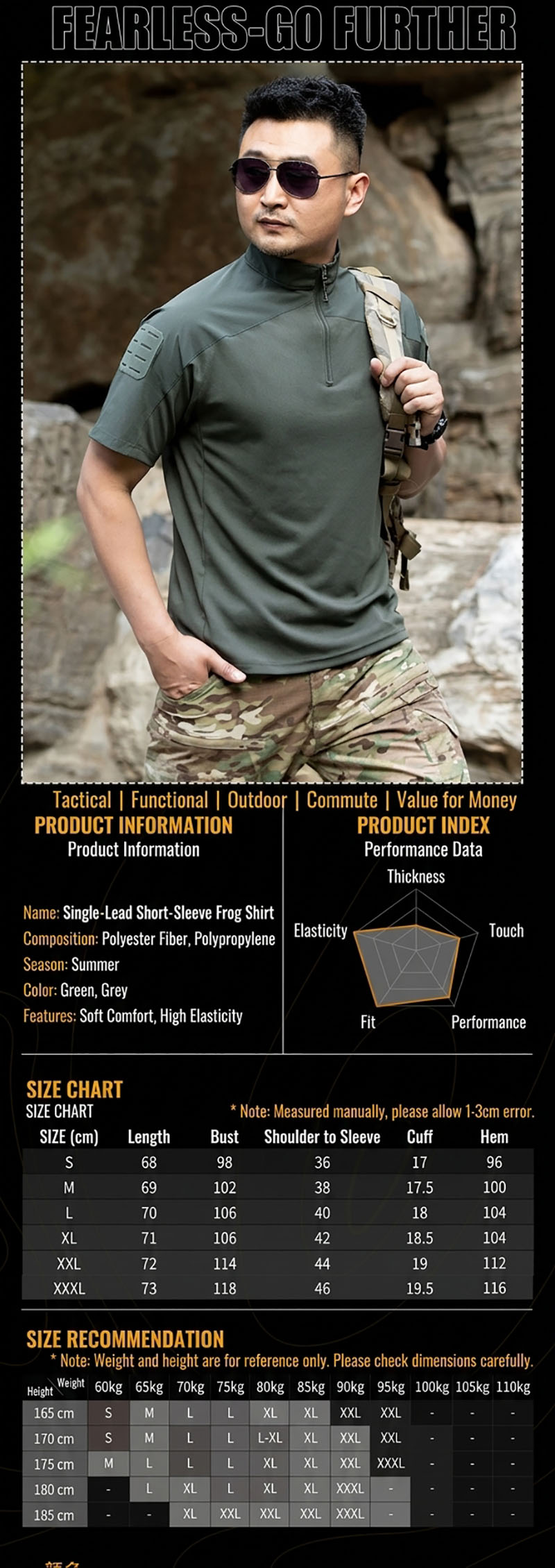 Easy to Style for Casual, Outdoor, and Tactical-Inspired Outfits TSS02 is very easy to work into everyday wardrobes. It can be styled simply for casual summer wear or combined with utility bottoms and outdoor gear for a more complete tactical-inspired look. This flexibility makes it a useful piece for customers who want one shirt that can move between city wear, outdoor routines, travel, and relaxed weekend outfits.