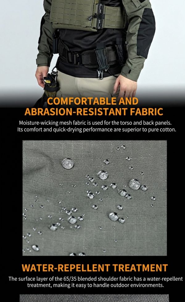 Great balance between comfort and tactical styling. The main body looks lightweight while the sleeves feel more durable, which makes it a solid choice for outdoor use.