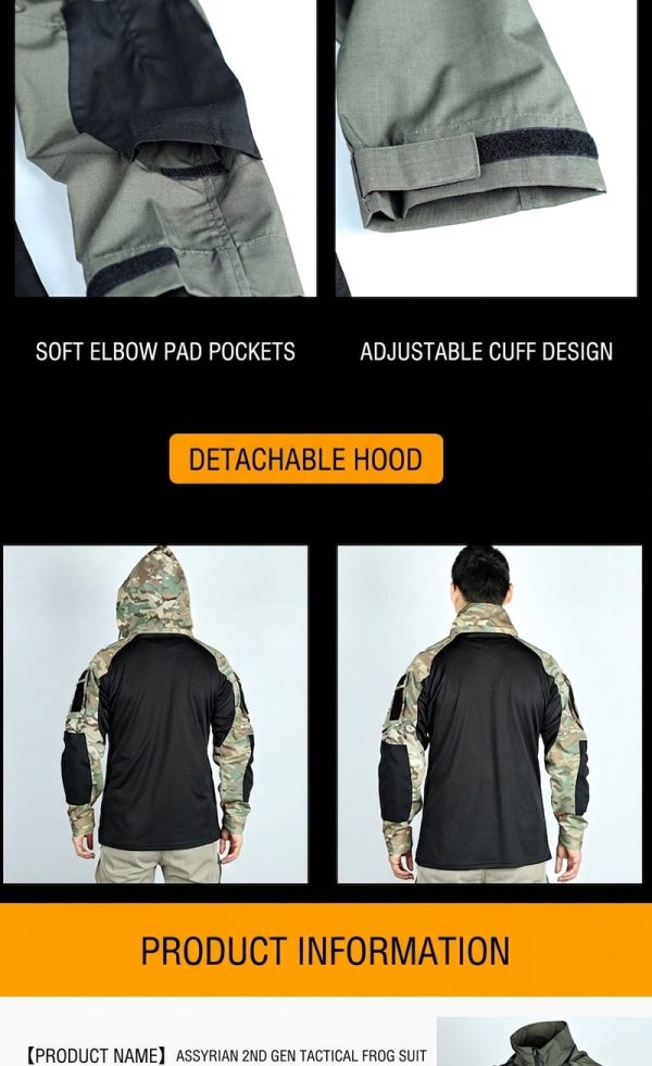 TSL05 Tactical Frog Suit Long Sleeve Shirt with Detachable Hood – Quick-Dry Outdoor Combat Top