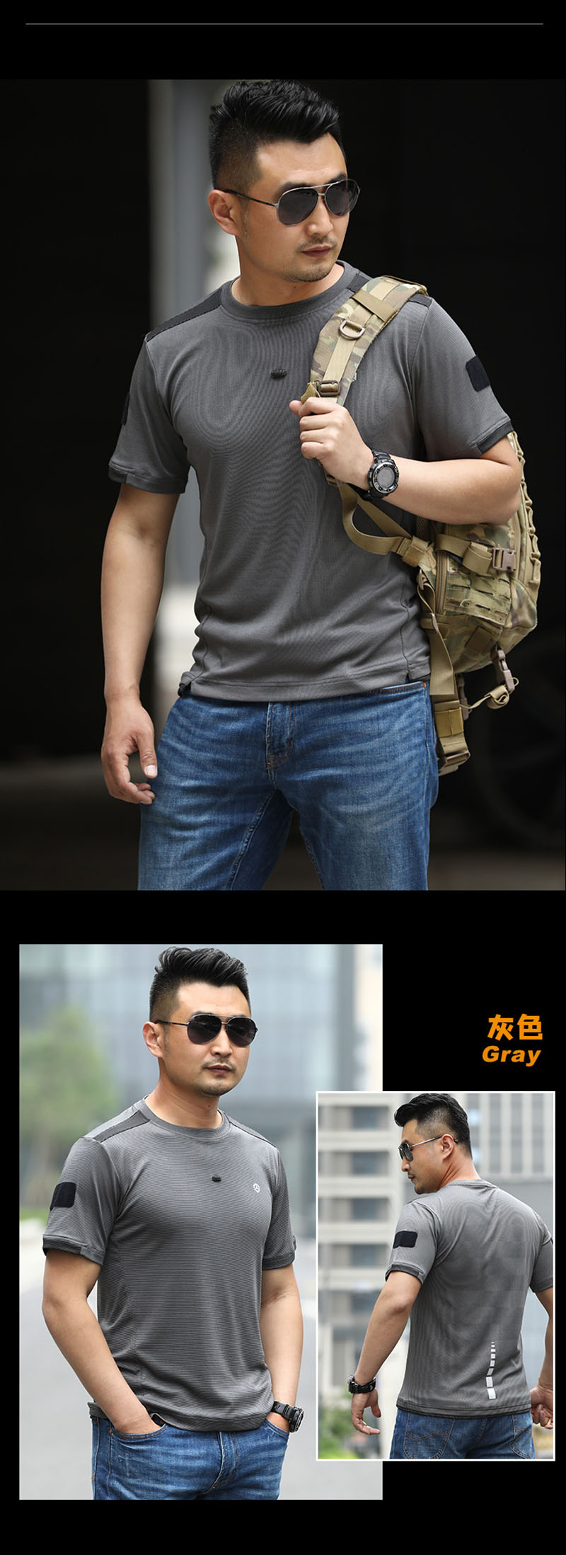 A good tactical casual T-shirt for summer. The design is simple but has a stronger military-inspired look than a normal sports tee.