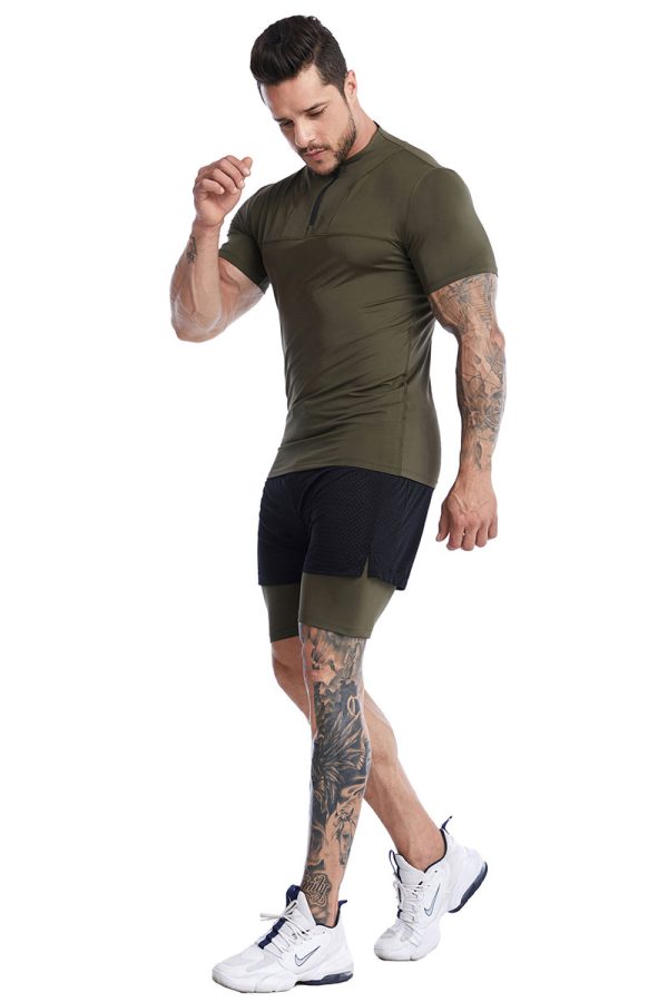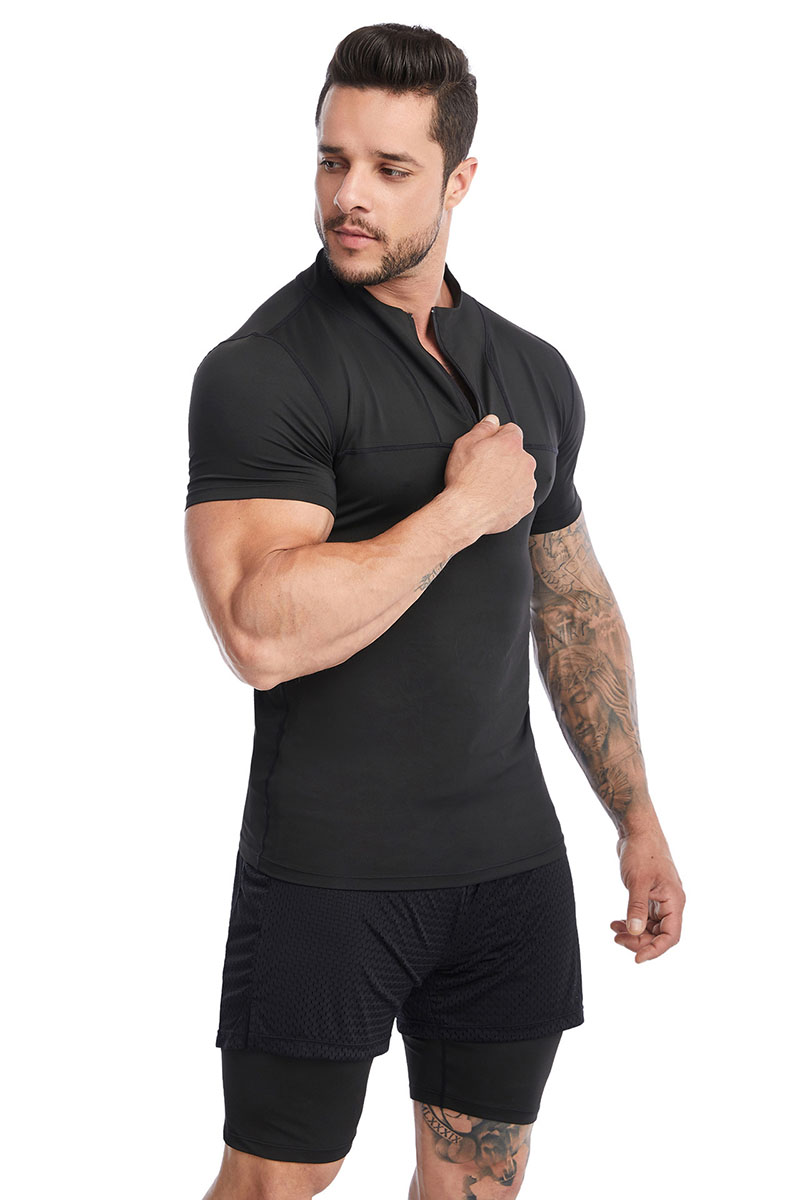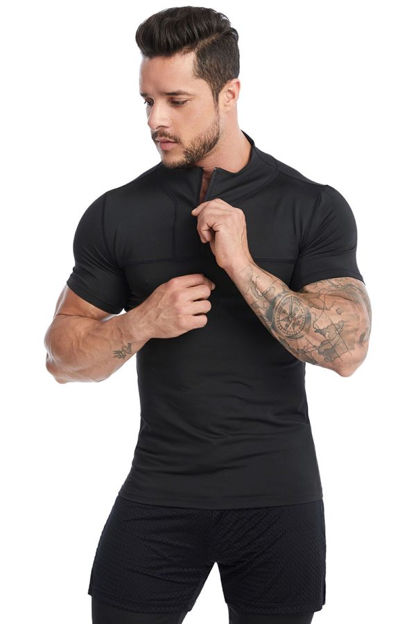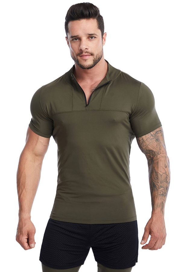 TSS10 Men’s Lapel Short-Sleeve Fitness Top – Quick-Drying Breathable Running and Training Polo Shirt