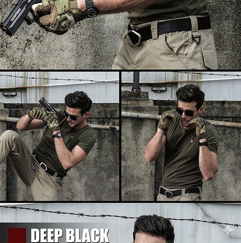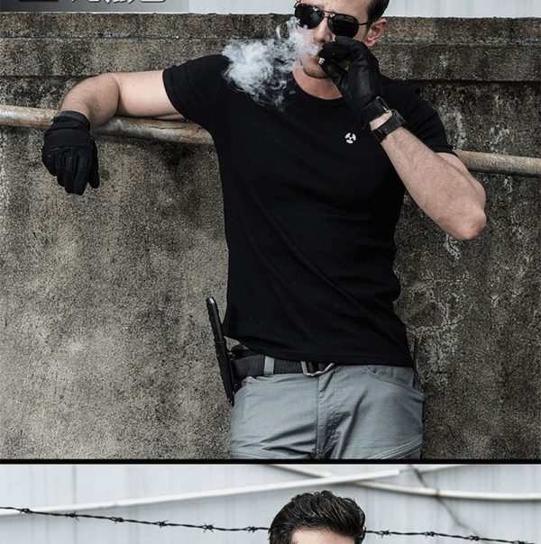 The shirt feels simple, clean, and very easy to wear in hot weather. I like the slimmer shape because it looks sharper than a regular loose tactical tee.