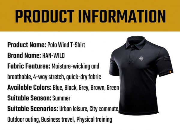 TSS12 is positioned as a lightweight tactical polo-style shirt with a clean outdoor sports identity and a summer-ready short-sleeve profile. Its overall direction combines tactical-casual styling, breathable daily comfort, and an easy athletic look, making it suitable for customers who want something neater than a basic T-shirt while still staying practical for everyday wear.