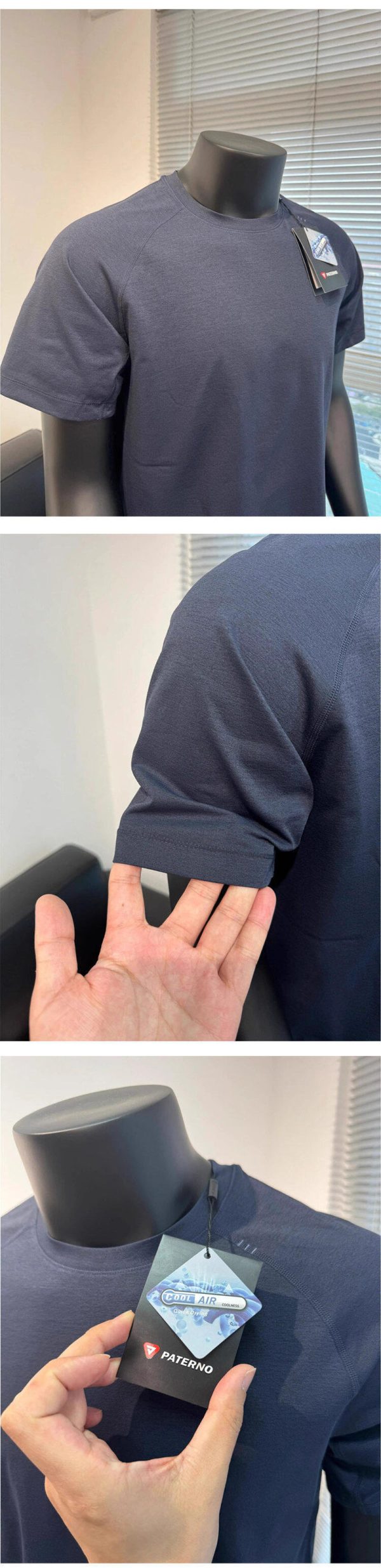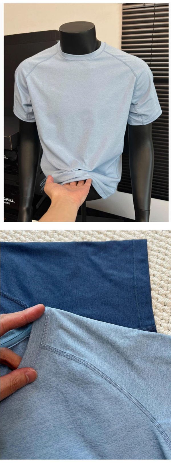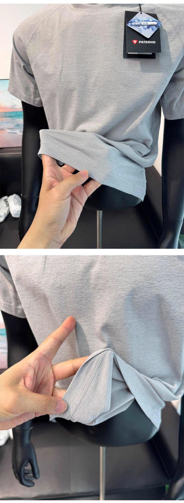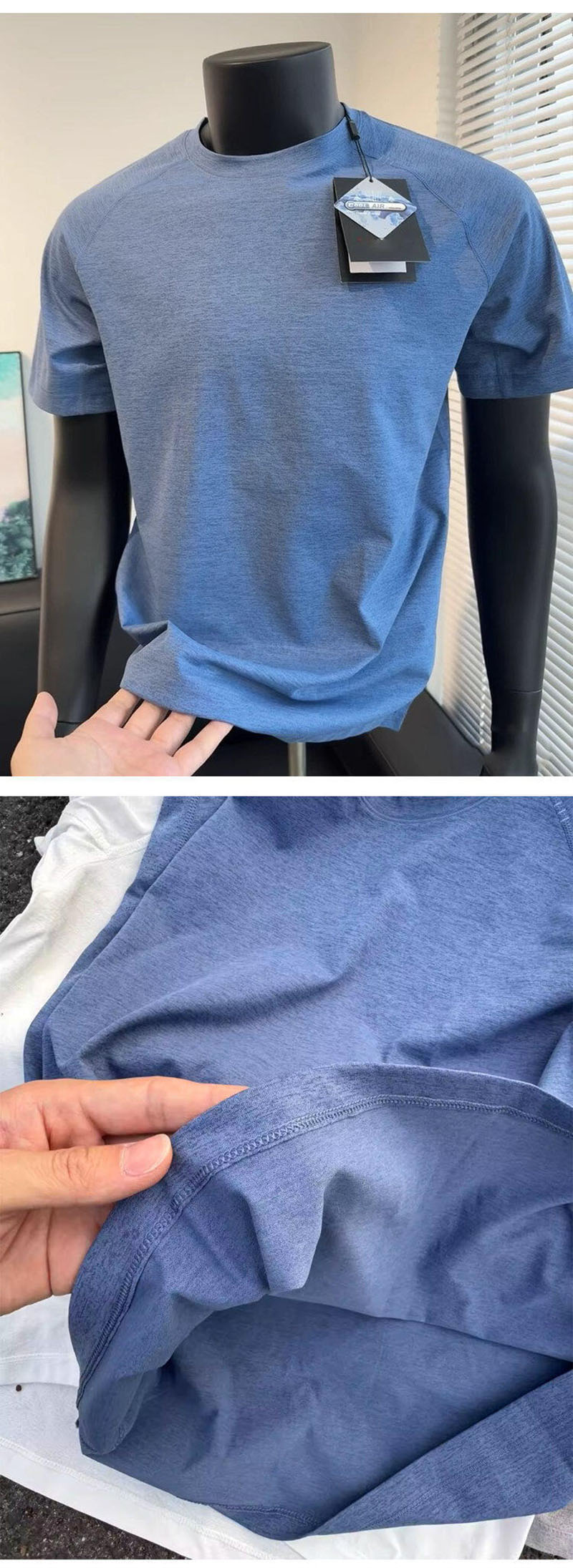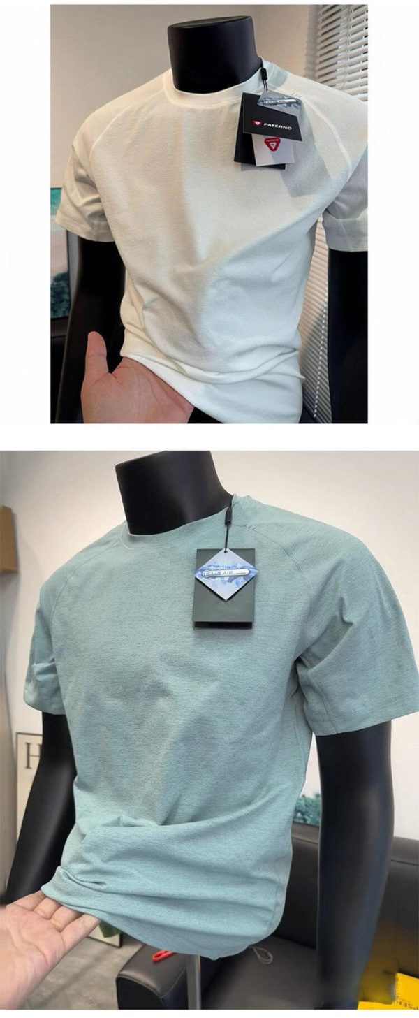 Lightweight and quick-dry fabric presentation The source material presents this shirt as a quick-drying, breathable summer option. The close-up images suggest a soft, light fabric with a smooth drape, which supports the idea of a shirt designed for active movement, hot weather, and faster moisture release compared with heavier cotton tees.