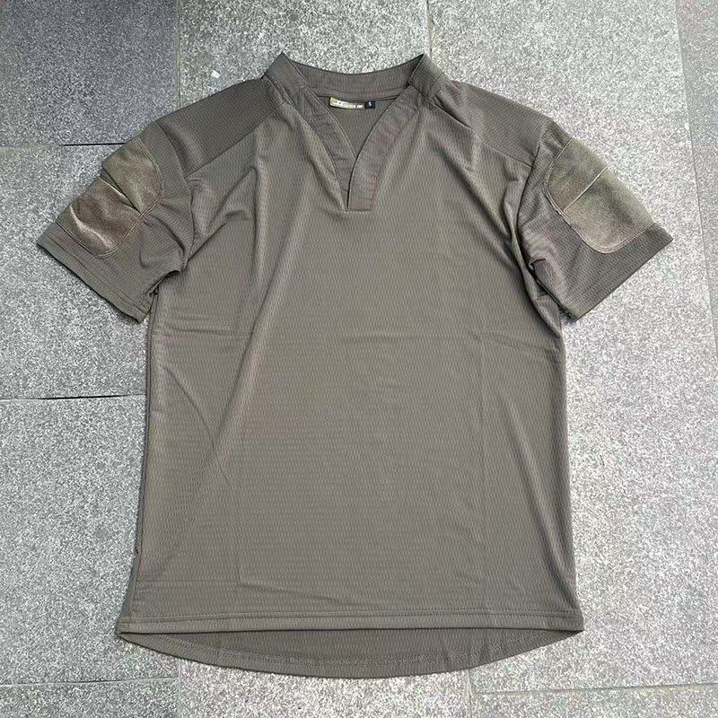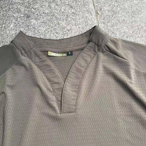 I like the V-neck design and the shoulder detail because it gives the shirt a stronger tactical look without being too heavy. The color options also look very practical.