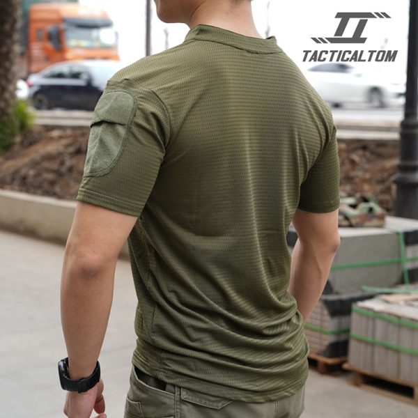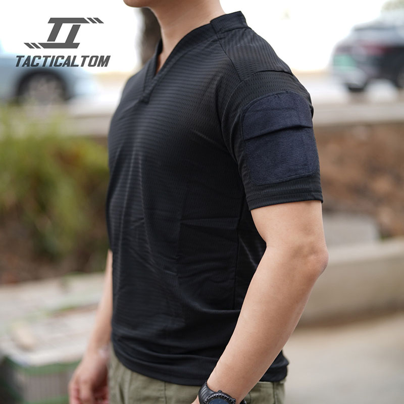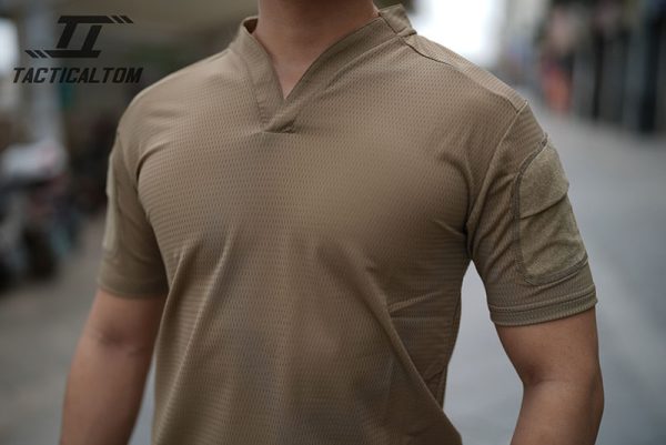 The TSS22 Tactical Tom short-sleeve T-shirt combines a clean military-inspired look with lightweight comfort and practical outdoor wearability. With its V-neck collar, breathable textured body fabric, reinforced shoulder panels, and quick-drying presentation, it works well for hiking, training, everyday tactical styling, and warm-weather activity.