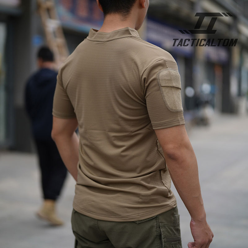 The fabric looks light and breathable, and the fit is much cleaner than a normal sports tee. It works well with tactical pants and feels easy to wear in hot weather.